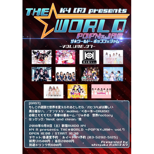 K£´¡ØR¡Ùpresents¡ÖTHE¡úWORLD ¡ÁPOP'N¡ßJAM¡Á vol.7¡× Æü»þ¡§09/15(ÅÚ) ³«¾ì16:00 / ³«±é16:30 ²ñ¾ì¡§¿·½ÉRUIDO K4 ÎÁ¶â¡§Á°Çä1,500±ß / ÅöÆü2,000±ß (1DÊÌ) ½Ð±é¡§¤·¤³¤ÎµÕÀâ¤ÇÀ¤³¦¤òÊѤ¨¤é¤ì¤ë¤È¤·¤¿¤é¡¿¥Ñ¥Ô¥×¥Ú¥Ý¤ÏÆñ¤·¤¤¡¿¹õ¤ÏÃå¤Ê¤¤¡£¡¿¥Æ¥ó¥·¥á¥·¡¿malika¡¿¤¯¤ë¡¼¤º¡ÁCRUiSE!¡¿É¬»¦¥¨¥â¥â¥â¥â!!¡¿ÀĽÕ18ÈÖ¥Û¡¼¥à¡¿¤ê¤å¤á¤ë♡À¤³¦factory¡¿¤Ï¤Ã¤Ô¤Ã¤Ô¡¿¡Ä