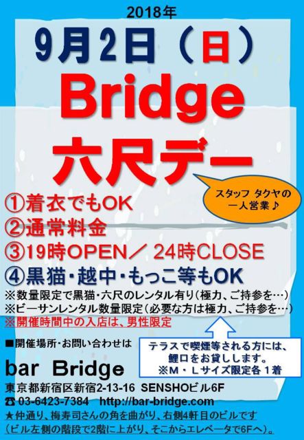 ´ÉÍý¿ÍÍÍ¡¢ÃΤê¹ç¤¤¤Î¥¤¥Ù¥ó¥È¤òÀëÅÁ¤µ¤»¤Æ¤¤¤¿¤À¤­¤Þ¤¹¡£ÉÔÅÔ¹ç¤Ê¾ì¹ç¤Ïºï½ü´ê¤¤¤Þ¤¹¡£ Bridge ¥¹¥¿¥Ã¥Õ ͧã¤Î¥¿¥¯¥ä¤¯¤ó¤Î°ì¿Í±Ä¶È»þ¤Ë³«ºÅ¤ÎBridge Ï»¼Ü¥Ç¡¼¡£ ¢¡2018ǯ9·î¤Ï2Æü¡ÊÆü¡Ë¤Ë³«ºÅ¤·¤Þ¤¹¡£ ¡úÃå°á¤Ç¤âOK¡Ê½é¿´¼Ô¤ÎÊý¤ä¡¢Ì¤äƤ¤¤ëÊý¤Ç¤â°Â¿´¢ö¡Ë ¡úÄ̾ïÎÁ¶â ¡ú¹õÇ­¡¦±ÛÃæ¡¦¤â¤Ã¤³Åù¤âOK ¡ú¥Æ¥é¥¹¤ÇµÊ±ì¤µ¤ì¤ëÊý¤Ë¤Ï¡¢¸ñ¸ý¤ò¤ªÂߤ·¤·¤Þ¤¹¡ÊM¡¦L¥µ¥¤¥º¸ÂÄê³Æ1Ãå¡Ë ¢¨êî¤Ï¶ËÎϤ´»ý»²´ê¤¤¤Þ¤¹¡Ê¹õÇ­¡¦Ï»¼Ü¤Î¥ì¥ó¥¿¥ë¤Ï¿ôÎ̸ÂÄê¡Ë¡£ ¢¨Íúʪ¡Ê¥Ó¡¼¥Á¥µ¥ó¥À¥ë¡Ë¤Î¤´ÍѰդâ¿ôÎ̸ÂÄê¤Ç¤¹¡£É¬ÍפÊÊý¤Ï¶ËÎϤ´»ý»²´ê¤¤¤Þ¤¹¡£