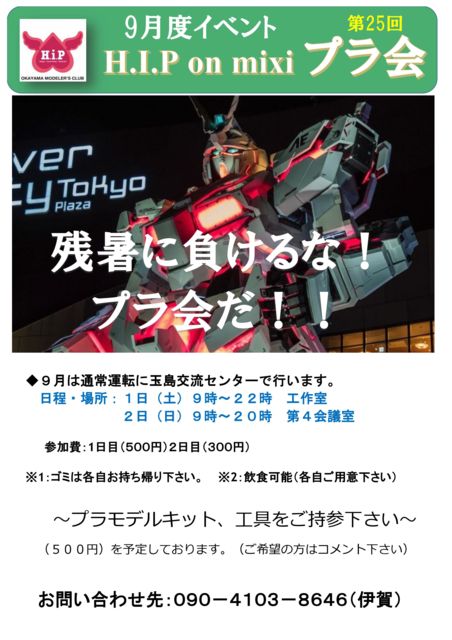 Âè249²ó¥Ð¥¹¥±(³ÎÄê) 9·î1Æü(ÅÚ)¤Î18¡Á22»þ Ãæ±ûÂΰé´Û¤Ç¤¹¡ª »²²Ã¤µ¤ì¤ëÊý¤Ïɬ¤ºmixi¤Ë½ñ¹þ¤ß¤ª´ê¤¤¤·¤Þ¤¹¡ª ½é»²²Ã¤ÎÊý¤Ï¥á¡¼¥ë¤«¥é¥¤¥ó¤Ç¤âÂç¾æÉפǤ¹¡ª ¡ÖͧãϢ¤ì¤Æ¤¤Þ¤¹¡×¤â£²²ó¤Þ¤Ç¤È¤µ¤»¤ÆÄº¤¤Þ¤¹¡£ £³²óÌܰʹߤÏͧ㼫¿È¤Çmixi¤òÅÐÏ¿¤·¤Æ ½ñ¹þ¤ß¤ª´ê¤¤¤·¤Þ¤¹¡£ ³«ºÅ»þ¹ï5ʬÁ°¤Ë¤ÏÃæ±ûÂΰé´Û¤Ë½¸¹ç¤·¤Æ²¼¤µ¤¤¡£ ²ñÈñ¤Ï400±ß¤Ç¤¹¡£º£²ó¤Ï¥Á¥±¥Ã¥È¹ØÆþÉÔÍפǤ¹¡£ ½é»²²Ã¤ÎÊý¤«¤é¤Ï¤¤¤¿¤À¤¤Þ¤»¤ó¡£ ¤è¤í¤·¤¯¤ª´ê¤¤¤·¤Þ¤¹¡£ »²²Ã¤µ¤ì¤ëÊý¤Ï¡ØŽ²ŽÍŽÞŽÝŽÄ»²²Ã¡Ù¤ò²¡¤·¤Æ ¥³¥á¥ó¥È¤·¤Æ²¼¤µ¤¤¡ù ¼ÁÌäÅù¤¢¤ì¤ÐÏ¢Íí¤·¤Æ²¼¤µ¤¤¡ª ¤è¤í¤·