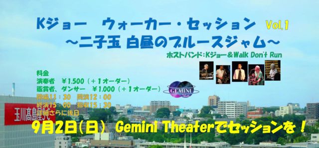 £²£°£±£¸Ç¯£¹·î£²Æü¡ÊÆü¡Ë ¡ÖK¥¸¥ç¡¼¡¡¥¦¥©¡¼¥«¡¼¡¦¥»¥Ã¥·¥ç¥ó¡× ¡Á¥Ë¥³¥¿¥ÞÇòÃë¤Î¥Ö¥ë¡¼¥¹¥¸¥ã¥à¡Á Gt.Vo.Ba.Dr.Key.Harp.Horn.³Æ¥Ñ¡¼¥È¥»¥Ã¥·¥ç¥ó¥Þ¥ó¤ª¤è¤Ó¡¢¥À¥ó¥¹¡¢Â¾¥Ñ¥Õ¥©¡¼¥Þ¡¼¤Î¤´»²²Ã¡¢¤Þ¤¿´ÑÀï¤Î¤ß¤Î¤«¤¿¤â´¿·Þ¤·¤Þ¤¹¡£ ³«¾ì11¡§30¡¡³«±é12¡§00 ½ª±é15¡§00¡¡Å±¼ý15¡§30 ¡ÚÎÁ¶â¡Û ¥»¥Ã¥·¥ç¥ó»²²Ã¼Ô ¡ï1,500¡Ü¥É¥ê¥ó¥¯Âå ´ÑÀ¥À¥ó¥µ¡¼¡¡¡ï1,000¡Ü¥É¥ê¥ó¥¯Âå Geminithiater https://www.geminitheater.jp/