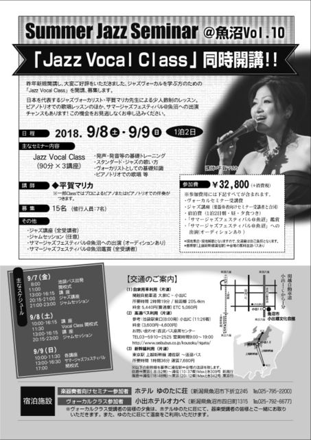 1Çñ2Æü¤ÎÇ»¸ü¤Ê¥¸¥ã¥º¥ô¥©¡¼¥«¥ë¥¯¥ê¥Ë¥Ã¥¯¡ª ÆüËܤòÂåɽ¤¹¤ë¥¸¥ã¥º¥ô¥©¡¼¥«¥ê¥¹¥È¡¦Ê¿²ì¥Þ¥ê¥«¤µ¤ó¤¬¹Ö»Õ¡ª ¥Ô¥¢¥Î¥È¥ê¥ª¤Ç¤Î¥ì¥Ã¥¹¥ó¤ä¡¢¹Ö»Õ¿Ø¤È¤Î¥¸¥ã¥à¥»¥Ã¥·¥ç¥ó¡¢ ¥¸¥ã¥º¥Õ¥§¥¹¤Ø¤Î½Ð±é¤Ê¤ÉÀ¹¤ê¤À¤¯¤µ¤ó¡ª Åìµþ¤«¤é¤â¾å±Û¿·´´ÀþÍøÍѤÇ1»þ´ÖȾ¡ª ¤³¤Î²Æ¡¢°ìÊâÀè¤Î¥¸¥ã¥º¥ô¥©¡¼¥«¥ë¤òÌܻؤ·¤Þ¤·¤ç¤¦¡ª¡ª -------------- ËèǯÂçÊѤ´¹¥É¾¤ò¤¤¤¿¤À¤¤¤Æ¤ª¤ê¤Þ¤¹¡ØSummer Jazz Seminar¡÷µû¾Â¡Ù¡ª µÇ°¤¹¤Ù¤10²óÌܤȤʤ른¥ã¥º¥»¥ß¥Ê¡¼¤ò¡¢º£Ç¯¤âÂ缫Á³¤ÎÃÏ ¿·³ã¸©µû¾Â¤Ç³«ºÅ¤¤¤¿¤·¤Þ¤¹¡ª¡ª ³Ú´ïÁÕ¼Ô¸þ¤±¡¢¥ô¥©¡¼¥«¥ë¸þ¤±¡¢Ä°¹Ö¡õ¥¸¥ã¥º