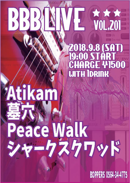 BBB LIVE 201 2018.9.8 (SAT) 19:00 START CHARGE \1500 with 1drink Atikam Êè·ê Peace Walk ¥·¥ã¡¼¥¯¥¹¥¯¥ï¥Ã¥É