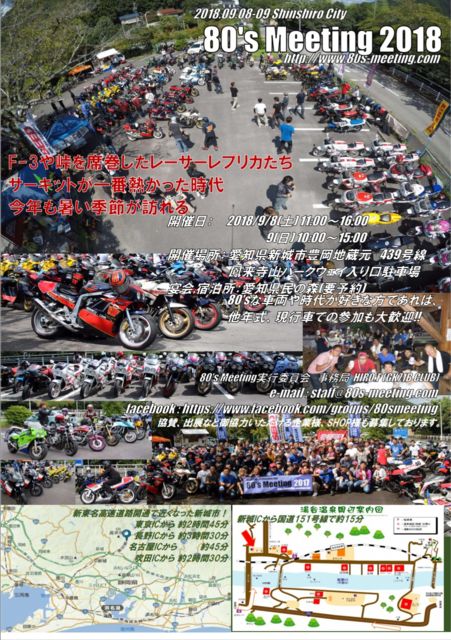 FZR DAY¥ß¡¼¥Æ¥£¥ó¥°±óÀ¬ÈǤΤ´°ÆÆâ¤Ç¤¹¡£ ¾ÜºÙ¤Ï°Ê²¼¤Î¤È¤ª¤ê¤Ç¤¹¡£ Æü»þ¡§Ê¿À®30ǯ9·î9Æü(Æü) ¡¡¡¡¡¡10»þ¡Á14»þ(ͽÄê) ²ñ¾ì¡§80's¥ß¡¼¥Æ¥£¥ó¥°2018Æâ ¡¡¡¡¡¡°¦Ãθ©¿·¾ë»Ô˲¬ÃÏ¢¸µ ¡¡¡¡¡¡439¹æÀþ¡¡ ¡¡¡¡¡¡Ë±Íè»û»³¥Ñ¡¼¥¯¥¦¥§¥¤Æþ¸ý²£¤ÎÃó¼Ö¾ì¤Ë¤Æ ¸¶Â§±«Å·Ãæ»ß(FZR DAY MEETING 9·î¤Î¤ß) ÅöÆü¸½ÃϤǤÏ80's¥ß¡¼¥Æ¥£¥ó¥°2018¤ò³«ºÅ¤·¤Æ¤¤¤Þ¤¹¡£ FZR°Ê³°¤Ë¤â¤¿¤¯¤µ¤ó¤Î80ǯÂå¼Ö½¸·ë¤·¤Æ¤¤¤Þ¤¹¤Î¤Ç¡¢Â¾¼Ö¼ï¤È¤Î¸òή¤â´Þ¤á¡¢Â礤¤ËÀ¹¤ê¾å¤¬¤ê¤¿¤¤¤È»×¤¤¤Þ¤¹¡£ ¤ß¤Ê¤µ¤ó¡¢¡Ö°ÂÁ´±¿Å¾¡×¤Ç½¸¤Þ¤ê¤Þ¤·¤ç¤¦
