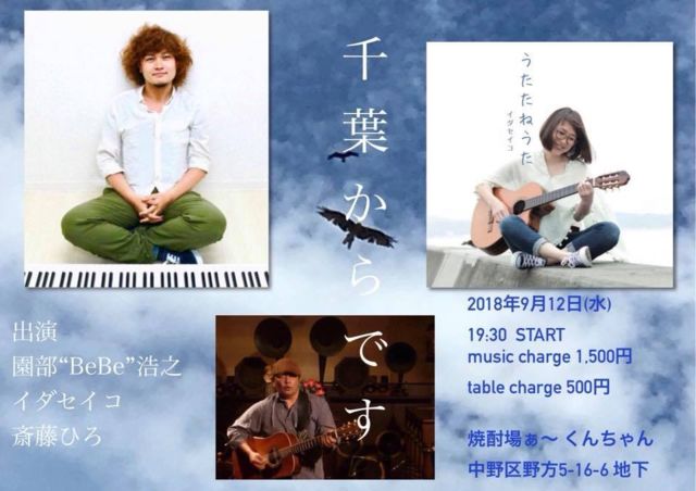 9/12(¿å)¤Ë¡¢¡Ø¸Þ´¶¡£¡Ù¤Ç¤ªÆëÀ÷¤ß¤ÎºØÆ£¤Ò¤í¤µ¤ó¤È¥¤¥À¥»¥¤¥³¤Á¤ã¤ó¡¢¤½¤·¤Æ¤¯¤ó¤Á¤ã¤ó½éÅоì¤È¤Ê¤ë±àÉô¡ÈBeBe¡É¹ÀÇ·¤µ¤ó¤È¡¢ÀéÍÕ¤«¤é¤ª»°¿Í¤ò¤ª·Þ¤¨¤·¤Æ¤Î¡ÊÀéÍÕ¤«¤é¤Ç¤¹¡£¡Ù¥é¥¤¥Ö¤ò³«ºÅ¤·¤Þ¤¹¡ª ¤ª³Ú¤·¤ß¤Ë ¡Ô¡ØÀéÍÕ¤«¤é¤Ç¤¹¡£¡ÙºØÆ£¤Ò¤í+¥¤¥À¥»¥¤¥³+±àÉô¡ÈBeBe¡É¹ÀÇ·¥é¥¤¥Ö¡Õ 2018.9.12.(¿å) 19:00¥ª¡¼¥×¥ó 19:30¥¹¥¿¡¼¥È ¥·¥ç¡¼¥Á¥ã¡¼¥¸1,500±ß+ŹÂå¶â(¤ªÄ̤·500±ß+°û¿©Âå) ¡Ú½Ð±é¡Û ºØÆ£¤Ò¤í ¥¤¥À¥»¥¤¥³ ±àÉô¡ÈBeBe¡É¹ÀÇ· ¸ð¤¦¤´´üÂÔ