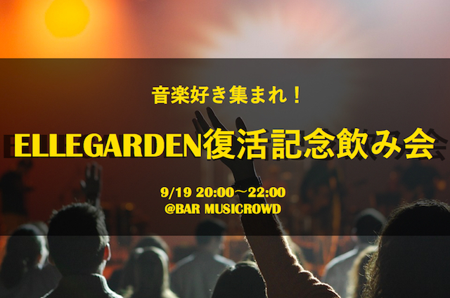 ¤³¤ÎÅÙ¡¢ELLEGARDENÉü³è¤ò½Ë¤¤¡¢BAR¡ÖMUSICROWD¡×¤Ë¤ÆÉü³èµÇ°°û¤ß²ñ¤ò³«ºÅ¤·¤Þ¤¹¡ª Éü³è¤ò½Ë¤¤¡¢¤ß¤Ê¤ÇELLEGARDEN¤Ë¤Ä¤¤¤Æ¸ì¤ê¡¢²Î¤¤¤Þ¤·¤ç¤¦¡ª¡Ê¥«¥é¥ª¥±¤Ä¤¤¤Æ¤¤¤Þ¤¹¡Ë ¢£¥¤¥Ù¥ó¥È¤Îή¤ì Åö¥¤¥Ù¥ó¥È¤Îή¤ì¤Ï°Ê²¼¤Ë¤Ê¤ê¤Þ¤¹¡£ ¢£¤ª¿½¤·¹þ¤ß ³Îǧ¤Î¥á¡¼¥ë¤¬ÆÏ¤¯ ¢ ľÀܲñ¾ì¤Ø ¢ ¼«¸Ê¾Ò²ð ¢ ¥Õ¥ê¡¼¥È¡¼¥¯ ¢ ÅöÆüÍÑ¥°¥ë¡¼¥×ºîÀ®¡ÊǤ°Õ¤Ç²ÃÆþ¡Ë ¢ ²ò»¶ ¢£¤³¤ó¤ÊÊý¤Ë¤ª¤¹¤¹¤á ¤³¤ó¤ÊÊý¤Ë¤ª¤¹¤¹¤á¤Î¥¤¥Ù¥ó¥È¤Ç¤¹¡£ ¡¦²»³Ú¹¥¤¤Ê¿Í¤È¸òή¤·¤¿¤¤ ¡¦¼«Ê¬¤Î²»³Ú¤ÎÉý¤ò¹¤²¤¿¤¤ ¡¦°ì½ï¤Ë¥é¥¤¥Ö¤Ë¹Ô¤¯¿Í¤òõ¤·¤Æ¤¤¤ë ¡¦µ×¡¹