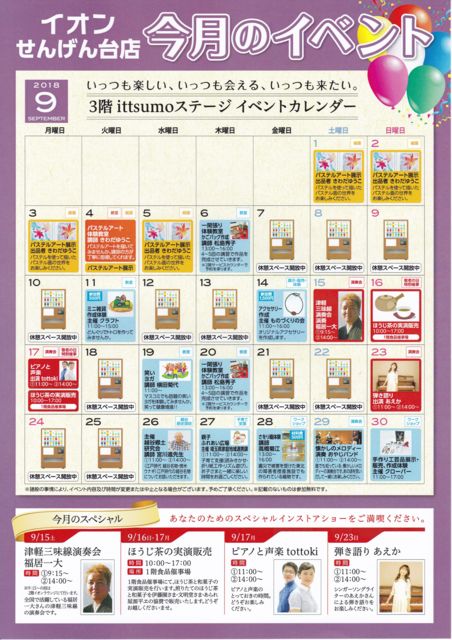 【会場】 イオンせんげん台店 3階ittumoステージ 〒343-0041 埼玉県越谷市千間台西3-2-12 (東武スカイツリーライン「せんげん台」駅 西口より徒歩約8分) https://www.aeon.com/store/%E3%82%A4%E3%82%AA%E3%83%B3/%E3%82%A4%E3%82%AA%E3%83%B3%E3%81%9B%E3%82%93%E3%81%92%E3%82%93%E5%8F%B0%E5%BA%97/ 【出演予定時間】 第1ステージ 11:00〜11:30頃 第2ステージ 14:00〜14:30頃 【料金】 観覧無料 ※屋内の為、雨天決行。 ※撮影・録音・録画は、ご遠慮くださいませ。 ※物販をお求めくださった方のみ、物販コーナーにて、【2シャッ