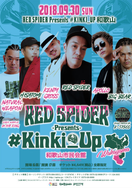 開催日:9月30日(日) 開場:16:00 開演:17:00 会場:和歌山市民会館小ホール 場所:和歌山県 住所:和歌山県和歌山市伝法橋南ノ丁7 チケット:発売中 お問い合わせ:キョードーインフォメーション 電話:0570-200-888 (全日 10:00〜18:00) RED SPIDER KENTY GROSS APOLLO NATURAL WEAPON HISATOMI BIG BEAR AIR KING K-3756S SOUND SYSTEM 前売チケット \4,649(税込) ※全席指定 ■TICKET INFO ローソンチケット 0570-084-005(Lコード:57474) http://l-tike.com/search/?keyword=57474 チケットぴあ 0570-02-9999(P