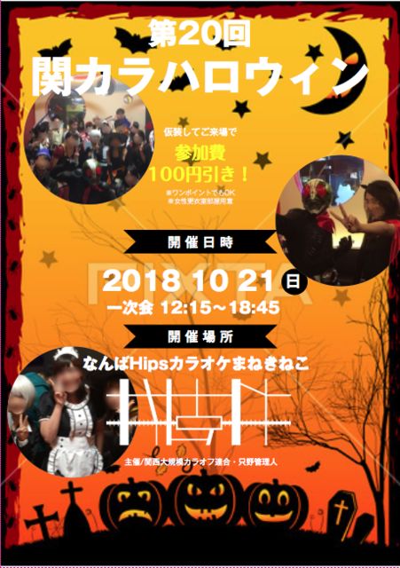 〜10/19 10:30時点 【一、二次会 受付締切!】 二次会キャンセル待ち全員確認済み ハイテンションの概要トピックを作成予定 イベント参加の方(イベント参加ボタンを押している方)に明日の詳細を一斉送信〜 第20回目の関カラオフ!! 関西大規模カラオケオフ連合から関カラオフ(*゚▽゚ノノ゙☆パチパチパチ カラオケを通じて、カラオケが好きな人達を通じて、カラオフが好きな人達を通じて皆さんでこの機会に楽しんでみませんか? ジャンルは基本はオールジャンル、J-pop、V系、アニソン、ボカロやラブライブ系、K-popなん
