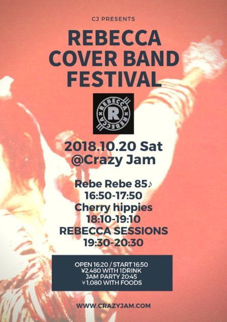 2018¡¡10/20(ÅÚ)¥×¥ì¥ß¥¢¥à¡¦¥ì¥Ù¥Ã¥«¤Þ¤Ä¤ê¤Ë¤´½Ð±é¤¢¤ê¤¬¤È¤¦¤´¤¶¤¤¤Þ¤¹¡ª ¥ì¥Ù¥Ã¥«¥«¥Ð¡¼¥Ð¥ó¥É¤¬£³ÁÈ·¤¤¤Þ¤·¤¿¡£ À¹¤ê¾å¤¬¤Ã¤Æ¤Þ¤¤¤ê¤Þ¤·¤ç¤¦¡ª¡ª ÂǤÁ¹ç¤ï¤»¤Ï¤³¤Á¤é¤Ç¿Ê¤á¤Æ¤Þ¤¤¤ê¤Þ¤¹¡£ ¢¡½Ð±é ¡Ú½Ð±é¼Ô£³ÁÈ·¤¤¤Þ¤·¤¿¡ª¡Û ¡¡REBECCA SESSIONS ¡¡¡¡¡ÌVo¡ÊCho¡Ë¥¸¥å¥ó&¥ß¥Æ¡¡G ¤¤¤±¤Á¤ã¤ó¡¡Key ¤¨¤Ó¡¡B ¥è¥¦¥«¥ó ¡¡¡¡¡¡Drs ¤Ä¤ë¤ß¤Ã¤Á¡¡Per ¹¬¡Í ¡¡Cherry hippies ¡¡¡¡¡ÌVo ¤«¤º¤ß¤ó¡¡Gt ¥í¥¥è¥Í¡¡Key ¤¨¤Ó¤Á¤ã¤ó¡¡Ba ¥¿¥«¥·¡¡Dr ¤Þ¤ó¤¤Á¡Í ¡¡Rebe Rebe 85¢ö ¡¡¡¡¡ÌSarah (¥µ¥é) Vo¡¡¤ä¤Þ¤±¤ó Gt¡¡¤Õ¤¦¤µ¤ó Key¡¡¥ª¥¬