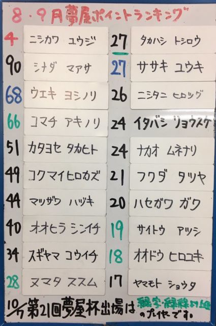 Âè21²ó Ì´²°ÇÕ ¤Î¤´°ÆÆâ¤Ç¤¹¡£ Âè21²óÌ´²°ÇÕ¤Ï8¡¦9·î³«ºÅ¤ÎYPR¡áÌ´²°¥Ý¥¤¥ó¥È¥é¥ó¥¥ó¥°¾å°Ì8̾+Á°²ó¤ÎÌ´²°ÇÕ²¦¼Ô¤Ë²Ã¤¨Ì´²°Çեȥ饤¥¢¥ë¤ò¾¡¤ÁÈ´¤¤¤¿3̾¤Î¥×¥ì¥¤¥ä¡¼¡¢ÁíÀª12̾¤è¤ë¾·ÂÔÀ©¤ÎÂç²ñ¤Ç¤¹¡£ ¤³¤ì¤Þ¤Ç20²ó¤â¤Î³«ºÅ¤ò½Å¤Í³§Íͤˤ´°¦¸Üĺ¤¤Þ¤·¤¿Ì´²°ÇդǤ¹¤¬º£²óÂè21²óÌ´²°ÇÕ¤ò»ý¤Á¤Þ¤·¤ÆºÇ¸å¤Î³«ºÅ¤È¤µ¤»¤ÆÄº¤¯±¿¤Ó¤È¤Ê¤ê¤Þ¤·¤¿¤Î¤Ç¤³¤Î¾ì¤ò¼Ú¤ê¤Æ¤´Êó¹ð¤µ¤»¤ÆÄº¤¤Þ¤¹¡£ ºÇ¸å¤Î³«ºÅ¤È¤Ê¤ëÌ´²°Çդνо츢¤ò¼ê¤ËÆþ¤ì¤¿¥×¥ì¥¤¥ä¡¼¤Ï¤³¤ÎÊý¡¹¤Ç¤¹¢ ½Ð¾ìÁª¼ê ²¦¼Ô¡¡4¡¡¥Ë¥·¥«¥ï¥æ¥¦¥¸ÍÍ 1°Ì¡¡90¡¡¥·¥Ê¥À¥Þ¥¢¥µÍÍ 2°Ì¡¡66¡¡¥³¥Þ¥Á