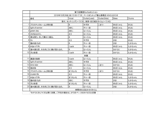 fra-foa(三上ちさこ)好きの人が集まってfra-foa(三上ちさこ)の曲を演奏しまくるイベント@関西です。 初参加の方、楽器未経験の方でも楽しめるイベントですので、 是非お気軽にご参加ください! 関西の方だけでなく、全国の皆様も都合がつけば是非参加して下さい! ご不明な点がありましたら書き込みをしていただくか、幹事までメッセージください(*^_^*) ●イベント詳細● 日時  2018年10月28日(日) 13:00〜17:00 場所  ベースオントップ東心斎橋 KINGスタジオ     http://www.bassontop.co.jp/studio_higashishinsaibash