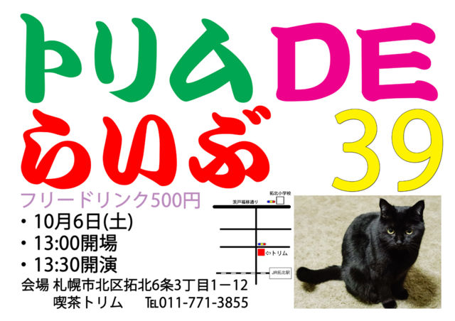 ¡Ø¥È¥ê¥àDE¤é¤¤¤Ö 39¡Ù ¡ù½Ð±é¼Ô¤Þ¤À¤Þ¤ÀÂçÊ罸¡Á¡ù 10·î6Æü¡ÊÅÚ¡Ë £±£³¡§£°£°³«¾ì £±£³¡§£³£°³«±é ²ñ¾ì¡§¥È¥ê¥à ¡Ê»¥ËÚ»ÔË̶èÂóËÌ6¾ò3ÃúÌÜ£±¡Ý£±£²¡Ë ²ñÈñ¡§¥Õ¥ê¡¼¥É¥ê¥ó¥¯500±ß »ý¤Á¹þ¤ßOK¡Á¡ª¡ª¡ª ¡¡¡ù»ÃÄ꥿¥¤¥à¥Æ¡¼¥Ö¥ë¡ù 13:30¡Á14:00 ¼¯Ì¥ó¥¸¤µ¤ó 14:00¡Á14:30 IJU¤µ¤ó¤ó 14:30¡Á15:00 sanatu¤µ¤ó 15:00¡Á15:30 ¾¾ÅıٻҤµ¤ó 15:30¡Á16:00 ¼ò°æ Çî»Ë¤µ¤ó 16:00¡Á16:30 ¥«¥à¥¤ÅÅ(²¾)¤µ¤ó ¡¡¡¡¡¡¡¡¡¡(Vo¤Ö¤ë¤Þ Bass²½Ç Guitar¥ì¥Õ¥¿¥«¥à¥¤)