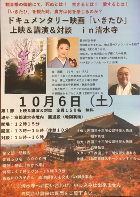 £±£°·î£¶Æü¤ËµþÅÔ¤ÎÀ¶¿å»ûÍͤˤƥ¤¥Ù¥ó¥È¤ò´ë²è¤·¤Þ¤·¤¿¡£ ¸æÂ¸ÃΤÎÊý¤â¿¤¤¤È»×¤¤¤Þ¤¹¤¬¡¢Ž¢¤¤¤¤¿¤ÒŽ£¤Ï¿Í¤¬»à¤Ì»þ¤ò¹Í¤¨¤µ¤»¤é¤ì¤ë±Ç²è¤Ç¡¢¼ÂÂ賤ò¸µ¤ËĹëÀî¤Ò¤í»Ò¤µ¤ó¤¬¼«¤é£Ä£Ö£Ä¤òÀ½ºî¤·¡¢¹Ö±é¤µ¤ì¤Þ¤¹¡£ ¤ª»ûÍͤˤơ¢»à¤Ì¤³¤È¤è¤ê¤âÀ¸¤¤ë¤³¤È¡¢´Ç¼è¤ë»ö¤ò¹Í¤¨¤Æ¤ß¤Æ¤âÌÌÇò¤¤¤«¤È»×¤¤¤Þ¤¹¡£ »ä¤¬¤½¤¦¤Ç¤¢¤Ã¤¿¤è¤¦¤Ë¡¢¤¿¤Ö¤ó¾¯¤·¹Í¤¨Êý¤¬ÊѤï¤ë¤«¤â¤·¤ì¤Þ¤»¤ó¤è(^^) ÂÐÃ̤ϡ¢Ä¹Ã«Àî¤Ò¤í»Ò¤µ¤ó¤È¡¢À¶¿å»û¿¹À¶ÈÏ´ÉĹàɲ¼(ǯËö¤Ëº£Ç¯¤Î´Á»ú¤ò½ñ¤«¤ì¤ëÊý)¤Î¤´»Ò©Íͤο¹À¶¸²¤µ¤ó¤Ç¤¹¡£ Â裱Éô¤Î¾å±Ç¡¢¹Ö±é¡¢ÂÐÃ̤Ï̵ÎÁ¤Ç¤¹¡£ Â裲Éô¤Îº©¿Æ²ñ¤ÏÍÎÁ
