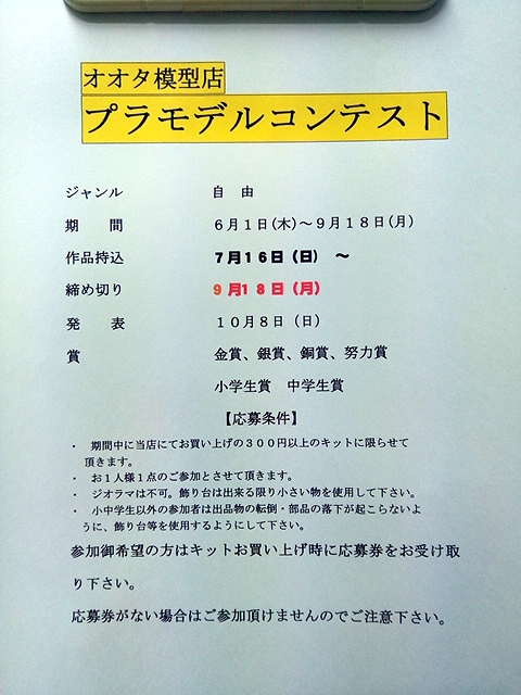 ¤µ¤Æ¤µ¤Æº£Ç¯¤â¤³¤Î»þ´ü¤¬¤ä¤Ã¤ÆÍè¤Þ¤·¤¿ ¥ª¥ª¥¿ÌÏ·¿Å¹¥×¥é¥â¥Ç¥ë¥³¥ó¥Æ¥¹¥È¤¬»Ï¤Þ¤ê¤Þ¤·¤¿¡££÷ ************************************************************************ µ¬Äꡨ ¡¥³«ºÅ´ü´ÖÃæ¤Ë¥ª¥ª¥¿ÌÏ·¿Å¹¤Ë¤Æ¤ªÇ㤤¾å¤²¤Î£³£°£°±ß°Ê¾å¤Î¥×¥é¥â¥Ç¥ë¥¥Ã¥È¤Ë ¡¡¡¡¸Â¤ê¤Þ¤¹¡£ ¡¡¡¡ .¡¡¤ª°ì¿ÍÍͰìÅÀ¤Î¤´»²²Ã¤È¤µ¤»¤ÆÄº¤¤Þ¤¹¡£ ¡¥ºîÉʤϥ¸¥ª¥é¥ÞÉԲġ£¾þ¤êÂæ¤Ï½ÐÍè¤ë¸Â¤ê¾®¤µ¤¤Êª¤ò»ÈÍѤ·¤Æ¤¯¤À¤µ¤¤¡£ ¡¥¾®Ãæ³ØÀ¸°Ê³°¤Î»²²Ã¼Ô¤Ï ½ÐÉÊʪ¤ÎžÅÝ¡¦ÉôÉʤÎÍî²¼¤¬µ¯¤³¤é¤Ê¤¤¤è¤¦¤Ë¡¢ ¡¡¡¡¾þ¤êÂæÅù¤ò»ÈÍѤ¹¤ë¤è¤¦¤Ë¤·¤Æ¤¯¤À¤µ