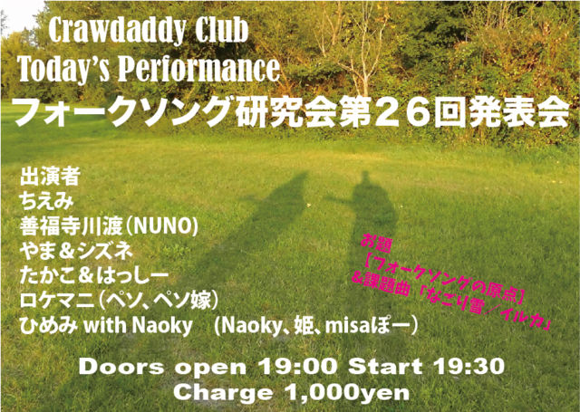 10/10 ËÜÆü¤Ï¡ÖÂ裲£¶²ó¥Õ¥©¡¼¥¯¥½¥ó¥°¸¦µæ²ñȯɽ²ñ¡× https://www.facebook.com/events/249265315791287/ OPEN 19:00 START 19:30 CHARGE 1000±ß¡¡ ½Ð±é¼Ô ¤Á¤¨¤ß Á±Ê¡»ûÀîÅÏ¡ÊNUNO) ¤ä¤Þ¡õ¥·¥º¥Í ¤¿¤«¤³¡õ¤Ï¤Ã¤·¡¼ ¥í¥±¥Þ¥Ë¡Ê¥Ú¥½¡¢¥Ú¥½²Ç¡Ë ¤Ò¤á¤ß with Naoky¡¡(Naoky¡¢É±¡¢misa¤Ý¡¼¡Ë ¤è¤í¤·¤¯¤ª´ê¤¤¤¤¤¿¤·¤Þ¤¹¡ª¡ª