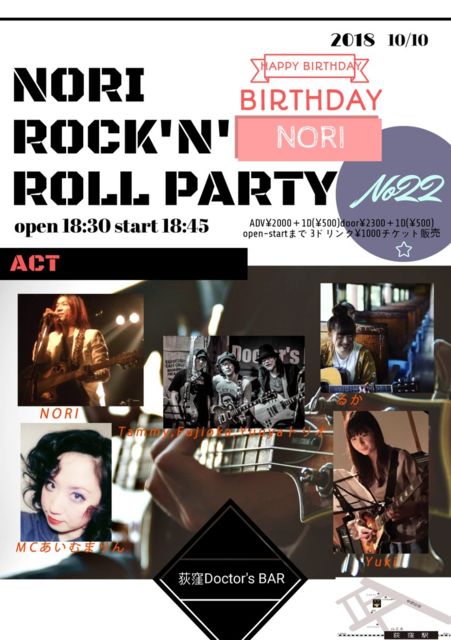2018/10/10 NORI ROCK'N' ROLL PARTY¡¡ VOL.22 ¡á¤Î¤ê §Ói§ñ§ä§ß£Ä§Ñ§å¡¡£Ì£É£Ö£Å¡á ²®·¦Doctar's BAR open 18:30¡¡ start 18:45 Á°Çä ¡ï2000¡Ü1D(¡ï500) ÅöÆü ¡ï2300¡Ü1D(¡ï500) ¡¦Tammy,Fujioka,Yuuya¥È¥ê¥ª ¡¦¤ë¤« ¡¦Yuki ¡¦¤Î¤ê ¤¢¤¤¤à¤Þ¤ê¤ó¤ÏMC¤Ç¤¹¡£