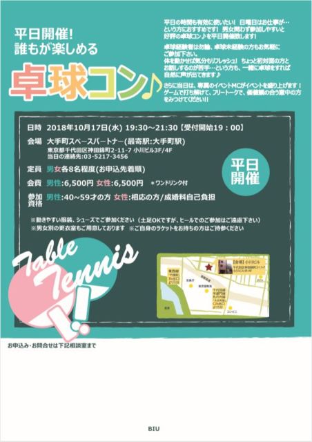 ï¤â¤¬³Ú¤·¤á¤ëÂîµå¥³¥ó¢ö Æü»þ 2018ǯ10·î17Æü(¿å)¡¡19:30¡Á21:30¡Ê¼õÉÕ19:00¡Á¡Ë ¾ì½ê Âç¼êÄ®¥¹¥Ú¡¼¥¹¥Ñ¡¼¥È¥Ê¡¼ »²²ÃÈñ ÃËÀ¡§\6500¡¡½÷À¡§\6500 ÂÐ¾Ý ÃËÀ¡§40ºÍ¡Á59ºÍ¤ÎÊý ½÷À¡§Áê±þ¤ÎÊý¡ÊÀ®º§ÎÁ¼«¸ÊÉéô¡Ë Äê°÷¿ô ÃËÀ8̾ ½÷À8̾ ÆâÍÆ Ê¿Æü¤Î»þ´Ö¤â͸ú¤Ë»È¤¤¤¿¤¤¡ªÆüÍËÆü¤Ï¤ª»Å»ö¤¬¡Ä¤È¤¤¤¦Êý¤Ë¤ª¤¹¤¹¤á¤Ç¤¹¡ª Ã˽÷Ìä¤ï¤º»²²Ã¤·¤ä¤¹¤¤¤È¹¥É¾¤ÎÂîµå¥³¥ó¢ö¤òÊ¿Æü³«ºÅÃפ·¤Þ¤¹¡£ Âîµå·Ð¸³¼Ô¤ÏÌÞÏÀ¡¢Âîµå̤·Ð¸³¤ÎÊý¤â¤ªµ¤·Ú¤Ë¤´»²²Ã¤¯¤À¤µ¤¤¡£ ÂΤòư¤«¤»¤Ðµ¤Ê¬¤â¥ê¥Õ¥ì¥Ã¥·¥å¡ª¤Á¤ç¤Ã¤È½éÂÐÌ̤ÎÊý¤È¤ªÏä·¤¹¤ë¤Î¤¬¶ì¼ê¡Ä¤È