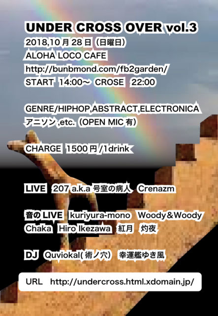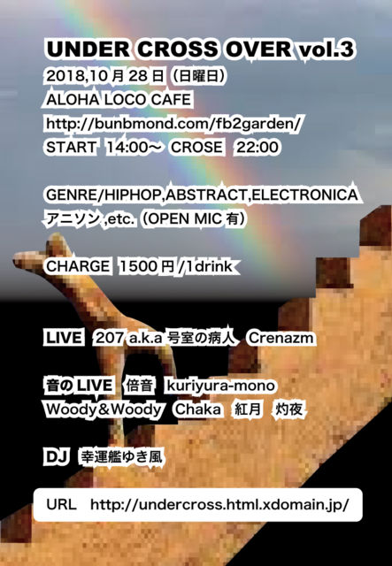 UNDERGROUND MUSIC¤ò¥Ù¡¼¥¹¤Ë¿§¡¹¤Ê²»¤Îɽ¸½¤ä¥¢¥Ë¥½¥ó¤È¥¯¥í¥¹¥ª¡¼¥Ð¡¼¤µ¤»¤ë»ö¤Ç¥«¥Õ¥§¤Î¶õ´Ö¤ÎBGM¤È¤·¤Æ²»³Ú¤ò¸ºß¤µ¤»LIVE¤ÏLIVE¤Ç¸«¤»¤Æ¹Ô¤±¤¿¤é¤È¹Í¤¨¤Æ¤¤¤Þ¤¹¡£¤ª¿©»ö¤ä¤ª¼ò²»³Ú¤òÌ£¤ï¤¤¤ËÀ§ÈóÀ§ÈóÍ·¤Ó¤ËÍè¤Æ¤¯¤ì¡ª¡ª http://undercross.html.xdomain.jp/