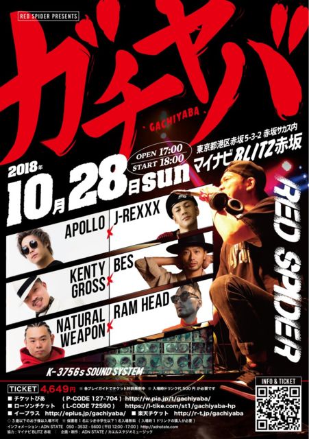 ³«ºÅÆü¡§10·î28Æü(Æü) ³«¾ì¡§17:00 ³«±é¡§18:00 ²ñ¾ì¡§¥Þ¥¤¥Ê¥ÓBLITZÀÖºä ¾ì½ê¡§ÅìµþÅÔ ½»½ê¡§ÅìµþÅÔ¹Á¶èÀÖºä5ÃúÌÜ3¡Ý2 ¥Á¥±¥Ã¥È¡§È¯ÇäÃæ ¤ªÌ䤤¹ç¤ï¤»¡§ADN STATE (Ê¿Æü12:00-17:00) ÅÅÏá§050-3532-5600 RED SPIDER KENTY GROSS APOLLO NATURAL WEAPON Á°Çä°ìÈÌ 4649±ß ¢¨¥É¥ê¥ó¥¯ÂåÊÌÅÓ500±ßɬÍפǤ¹¡£ ¢£TICKET INFO ¥í¡¼¥½¥ó¥Á¥±¥Ã¥È 0570-084-003 (L¥³¡¼¥É:72590) http://l-tike.com/concert/mevent/?mid=378300 ¥Á¥±¥Ã¥È¤Ô¤¢ 0570-02-9999(P¥³¡¼¥É:127-704) http://ticket-search.pia.jp/pia/search_all.do?kw=127-7
