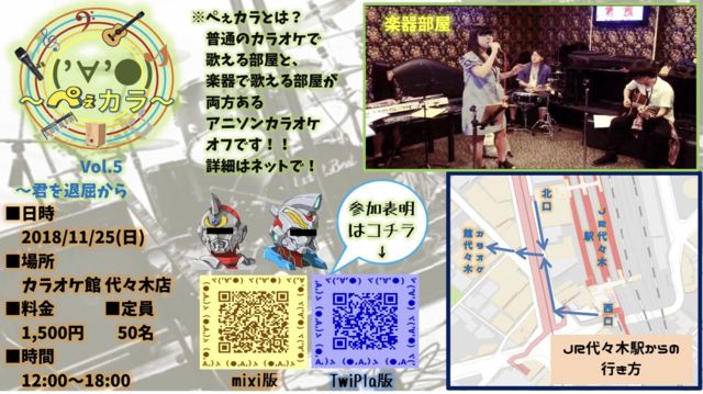 Á´¹ñ£±²¯£²£µ£°£°Ëü¥é¥ó¥Ð¥È¥é¡¼¤Î¤ß¤Ê¤µ¤Þ¡ª¡¢¤³¤ó¤Ë¤Á¤Ï¡£ ¤ß¤Ê¤µ¤Þ¡¢Ç¡²¿¤ª²á¤´¤·¤Ç¤·¤ç¤¦¤«¡£ ´¨¤¤Æü¤â¤´¤¶¤¤¤Þ¤¹¤Î¤Ç¤¯¤ì¤°¤ì¤âÉ÷¼Ù¤Ê¤É¾¤¤µ¤ì¤Þ¤»¤Ì¤è¤¦¤Ë¡£ º£²ó¤â³«ºÅ¾ì½ê¤Ï¡¢JR¾¾¸Í±ØÀ¾¸ý¤Î¡Ö¥«¥é¥ª¥±¥ë¡¼¥à ²Î¹¾ì¡×¤Ç¤¹¡£ ¤É¤¦¤¾Ê³¤Ã¤Æ¤´»²²Ã¤¯¤À¤µ¤¤¤Þ¤»¡£ ¡¡¡¡¡¡¡¡¡¡¡¡¡¡¡¡µ Â裱£²£¶²óÆîή»³¥é¥ó¥Ð¥È¥ª¥Õ¡Ê£²£°£±£¸Ç¯£±£±·îÅÙ¡Ë ¾ì½ê¡§ °Ê²¼ÉÕ¶á¤ÎÃϿޤǤ¹¡£ https://www.google.co.jp/maps/place/%E3%82%AB%E3%83%A9%E3%82%AA%E3%82%B1%E3%83%AB%E3%83%BC%E3%83%A0%E6%AD%8C%E5%BA%83%E5%A0%B4+%E6%9D%B