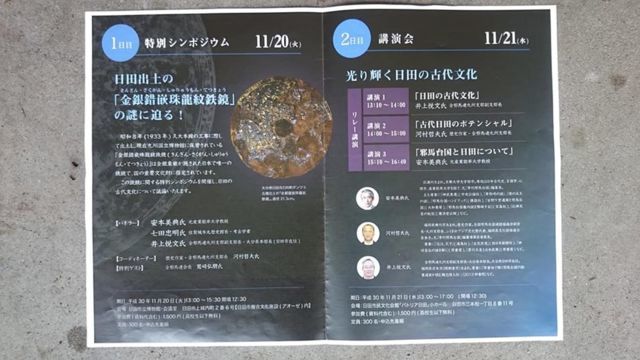全国邪馬台国連絡協議会が母体となり行う国民文化祭行事です。 ○江戸時代の平田篤胤と飯田武郷は八咫の鏡・鉄鏡説(『古事記』には鉄と書く) ○中国の『三国志』時代の曹操の文献「曹操しか持ち得なかった金と銀で装飾した鉄鏡」 『曹操集譯注』安徽毫県「曹操集」譯注小組【魏時代(220〜280年)の記録】 御物有尺二寸金銀鉄鏡一枚、皇后雑物用純銀錯七寸鉄鏡四枚、皇太子雑純銀錯七寸鉄鏡四 枚、貴人至公主九寸鉄鏡四十枚。 ○写真:九州国立博物館4周年特別展で配布された実物大の「うちわ」卑弥呼の宝飾鏡? ○高島忠平氏