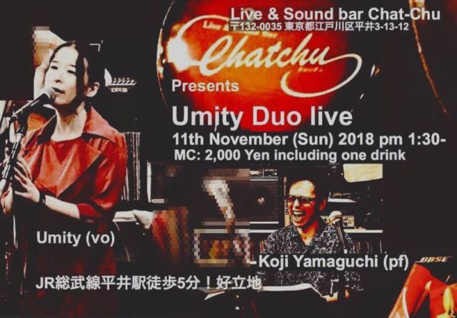 º£²ó¤ÎUmity(¤æ¤ß¤Æ¤£)¥é¥ó¥Á¥é¥¤¥Ö¤Ï¡¢¥¸¥ã¥º¥Ô¥¢¥Ë¥¹¥È¡¦Koji Yamaguchi»á¤È¤Î¥Ç¥å¥ª¡ª ¡Ö½©¡×¤ò¥Æ¡¼¥Þ¤Ë¤·¤¿Áª¶Ê¤Ç¤·¤Ã¤È¤ê¤È¥¢¥³¡¼¥¹¥Æ¥£¥Ã¥¯¤Ç¤ªÁ÷¤ê¤·¤Þ¤¹¢ö 2018ǯ£±£±·î£±£±Æü¡ÊÆü¡Ë 13:00¡¡OPEN¡¡/¡¡13:30¡¡START Charge¡¡2000±ß(500±ß¥á¥Ë¥å¡¼¥Á¥±¥Ã¥ÈÉÕ) ¢¡cast : umity vo. Koji Yamaguchi pf. ÈþÌ£¤·¤¤¤ª¿©»ö¤È¤È¤â¤Ë³§ÍͤΤ´Í½Ì󡦤´ÍèŹ¤ò¿´¤è¤ê¤ªÂÔ¤Á¤·¤Æ¤¤¤Þ¤¹^^