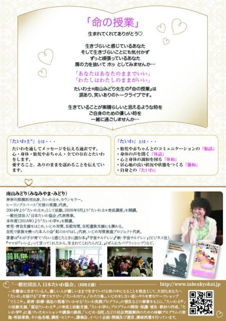 ¡Ø¤¿¤¤¤ï»ÎÆî»³¤ß¤É¤êÀèÀ¸¤Î¡ÖÌ¿¤Î¼ø¶È¡× À¸¤Þ¤ì¤Æ¤¯¤ì¤Æ¤¢¤ê¤¬¤È¤¦♡ À¸¤¤Å¤é¤¤¤È´¶¤¸¤Æ¤¤¤ë¤¢¤Ê¤¿ ¤½¤·¤ÆÀ¸¤¤Å¤é¤¤¤³¤È¤Ë¤âµ¤ÉÕ¤«¤º ¤º¤Ã¤È´èÄ¥¤Ã¤Æ¤¤¤ë¤¢¤Ê¤¿ ¸ª¤ÎÎϤòÈ´¤¤¤Æ¥Û¥Ã¤È¤·¤Æ¤ß¤Þ¤»¤ó¤«¡¦¡¦¡¦ ¡Ö¤¢¤Ê¤¿¤Ï¤¢¤Ê¤¿¤Î¤Þ¤Þ¤Ç¤¤¤¤¡× ¡Ö»ä¤Ï»ä¤Î¤Þ¤Þ¤Ç¤¤¤¤¡× ¤¿¤¤¤ï»ÎÆî»³¤ß¤É¤êÀèÀ¸¤Î¡ÖÌ¿¤Î¼ø¶È¡×¤ÏÎÞ¤¢¤ê¡¢¾Ð¤¤¤¢¤ê¤Î¥È¡¼¥¯¥é¥¤¥Ö¤Ç¤¹¡£ À¸¤¤Æ¤¤¤ë¤³¤È¤¬ÁÇÀ²¤é¤·¤¤¤È»×¤¨¤ë¤è¤¦¤Ê»þ¤ò¤¢¤Ê¤¿¤Ë¤ªÆÏ¤±¤·¤Þ¤¹¡£ ¤´¼«¿È¤Î¤¿¤á¤ÎÍ¥¤·¤¤»þ¤ò°ì½ï¤Ë²á¤´¤·¤Þ¤»¤ó¤«¡¦¡¦¡¦ ÅöÆü¤Ï¡¢²ñ¾ì¤Î³§¤µ¤Þ¤Î¤´¼ÁÌä¤Ë¤ªÅú¤¨