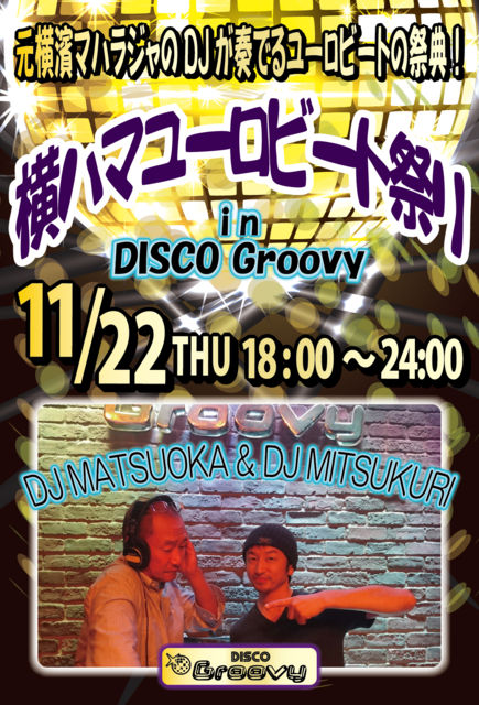元横濱マハラジャのDJ'sが奏でるユーロビートの祭典です!ノリノリ踊れる音満載にて夢の一夜をお贈りします♪ 【DJ's】 MATSUOKA / MITSUKURI 【開催時間】 18:00〜24:00 【ハッピーアワー料金 / 18:00〜19:00にご来店の方】 男性:¥2,500 / 2Drinks 女性:¥2,000 / 2Drinks 【料金 / 19:00以降ご来店の方】 男性:¥3,000 / 2Drinks 女性:¥2,500 / 2Drinks