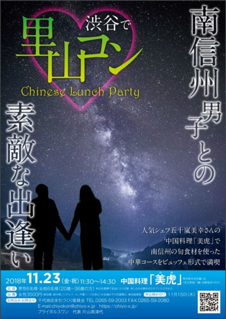 ½Âë¤ÇΤ»³¥³¥ó¡ÁÆî¿®½£Ã˻ҤȤÎÁÇŨ¤Ê½Ð²ñ¤¤¡Á Æü»þ 2018ǯ11·î23Æü(¶â) 11:30¡Á14:30¡Ê¼õÉÕ11:10¡Á¡Ë ¾ì½ê Ãæ¹ñÎÁÍý¡ÖÈþ¸×¡×¡Ê¤ß¤æ¡Ë¡Êµþ²¦¿·ÀþȨ¥öë±ØÅÌÊâ10ʬ¡Ë »²²ÃÈñ ½÷À¡§3,500±ß¡Ê¥Î¥ó¥¢¥ë¥³¡¼¥ë¡Ë »ñ³Ê ½÷À¡§20¡Á36ºÐ¤ÎÊý Äê°÷¿ô Ã˽÷¡§³Æ6̾¡ÊÀèÃå½ç¡¦Äê°÷¤Ë¤Ê¤ê¼¡ÂèÄù¤áÀڤ餻¤ÆÄº¤¤Þ¤¹¡Ë ÆâÍÆ ¶¨»¿¡§ÀéÂåÃ϶è¤Þ¤Á¤Å¤¯¤ê°Ñ°÷²ñ¡ÊĹÌÈÓÅÄ»Ô¡Ë ¤ªÞ¯Íî¤ÇÁÇŨ¤Ê¤ªÅ¹¤òÂߤ·ÀڤꡢÆî¿®½£¤Î´õ¾¯¤Ê¿©ºà¡¢¥ª¡¼¥¬¥Ë¥Ã¥¯¤ÊÌîºÚ¤Ê¤É¤ò»È¤Ã¤¿ÆÃÊÌ¥á¥Ë¥å¡¼¤Ç¤ª¤â¤Æ¤Ê¤·¡ª ˤ«¤Ê¼«Á³¤È¿¤Ó¤ä¤«¤Êµ¤¼Á¤Ë°é¤Þ¤ì¤¿¡¢¡ÖÍ¥¤·¤¯¤Æ¤Þ¤Ã¤¹