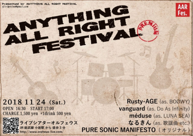 Anything Allright Festival Premium ½©¤ÎÌëĹ¤Ë¶Ë¾å¤Î¤Ò¤È»þ¤ò✨ ¤¤¤Ä¤â¤Î¥ª¥ë¥Õ¥§¥¹¤È¤Ï¼ñ¸þ¤òÊѤ¨¤Þ¤·¤Æ ¤æ¤Ã¤¿¤ê¤È¤·¤¿¥¿¥¤¥à¥¹¥±¥¸¥å¡¼¥ë¤Ç¡¢Í¼Êý¤«¤é³«ºÅ¤Ç¤¹¡£ º£²ó¤âÁÇÀ²¤é¤·¤¤¥Ð¥ó¥É¤µ¤ó¤¬¤´½Ð±é¤¯¤À¤µ¤¤¤Þ¤¹¡ª ¤ß¤ó¤Ê¤ÇÁÇŨ¤Ê²»³Ú¤òݤ¤¤Æ¤¢¤Ã¤¿¤«¤¯¤Ê¤ê¤Þ¤·¤ç¤¦¡ª¡ª ²ñ¾ì¡§¾®´ä¥ª¥ë¥Õ¥§¥¦¥¹ http://www.orpheus-live.com/sp/ ¥Á¥±¥Ã¥ÈÂå¡§1500±ß¡Ü1drink ³«¾ì¡§16»þ30ʬ ³«±é¡§17»þ Rusty-AGE¡Êas.BOOWY¡Ë vanguard¡Êas.Do As Infinity¡Ë méduse¡Êas.LUNA SEA¡Ë ¤Ê¤ë¤¤ó¡Êas.²ÎÍØ¶Êetc¡Ë PURE SON