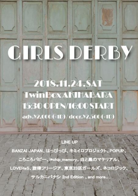 ¡Ö¥¢¥¤¥É¥ë¥À¡¼¥Ó¡¼£²Éô¡× Æü»þ¡§11/24(ÅÚ) ³«¾ì15:30 / ³«±é16:00 ²ñ¾ì¡§TwinBox AKIHABARA ÎÁ¶â¡§Á°Çä2,000±ß / ÅöÆü2,500±ß(1DÊÌ) ¢¨ºÆÆþ¾ì²Ä(Í×1D) ½Ð±é¡§¤Ï¤Ã¤Ô¤Ã¤Ô/BANZAI JAPAN/¥¥ß¥¤¥í¥×¥í¥¸¥§¥¯¥È/POP UP/¤³¤í¤³¤í¥Ñ¥Ô¡¼/i*chip memory/Çò¤È¹õ¤Î¥Þ¥Æ¥ê¥¢¥ë/LOVEReS/ÀûΧ¥Õ¥ê¡¼¥¸¥¢/Åìµþ23¶è¥¬¡¼¥ë¥º/¥Í¥³¥í¥¸¥Ã¥¯/¥µ¥ë¥«¥Ë¥Ð¥Ê¥·/2nd Edition/¡Ä