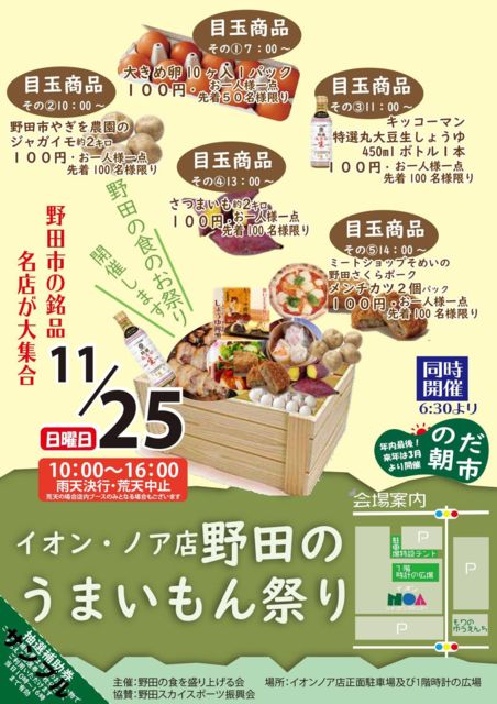 ¡ãÂç¿Íµ¤¤Î¡Ö¥¤¥ª¥ó²ñ¾ì¡×°Æ·ï¤Ç¤¹¡ä 11/25¡ÊÆü¡ËÀéÍÕ¸©ÌîÅĻԡÖÌîÅĤΤ¦¤Þ¤¤¤â¤óº×¤ê¡×²ñ¾ì¤Ç¤Î ¥é¥¤¥Ö¥¹¥Æ¡¼¥¸¥Ñ¥Õ¥©¡¼¥Þ¥ó¥¹¡Ö½Ð±é½÷»Ò¥¢¡¼¥Æ¥£¥¹¥È¡×¶ÛµÞÊ罸¡ª ¼ã¼ê¸µµ¤¥¢¡¼¥Æ¥£¥¹¥È¤Ë¤è¤ëÃϰè³èÀ·¿¥é¥¤¥Ö¥¨¥ó¥¿¡¼¥Æ¥¤¥ó¥á¥ó¥È ¡Ø NODA MUSIC PANIC at AEON NOAH ¡Ù ÀéÍÕ¸©ÌîÅĻԡ֥¤¥ª¥ó¥Î¥¢Å¹¡×¤Ë¤Æ³«ºÅ¤µ¤ì¤ë¡¢ ÌîÅĻԤòÂåɽ¤¹¤ë¡Ö¿©¤Î°ìÂ祤¥Ù¥ó¥È¡¦ÌîÅĤΤ¦¤Þ¤¤¤â¤óº×¤ê¡×¤Î²ñ¾ì¤Ë ÆÃÀߥ¹¥Æ¡¼¥¸¤òÀߤ±¡ÖÃϰè³èÀ·¿¥é¥¤¥Ö¥¤¥Ù¥ó¥È¡×¤òŸ³«¤·¤Þ¤¹¡ª ¥é¥¤¥Ö¤Î¹ç´Ö¤Ë¡¢Ãϸµ¤Î¥¤¥ó¥¿¡¼¥Í¥Ã¥È¾ðÊóÈÖÁÈ ¡ÖÀéÍÕ¸©ÌîÅĻԡ¦¥Á¥¥Á