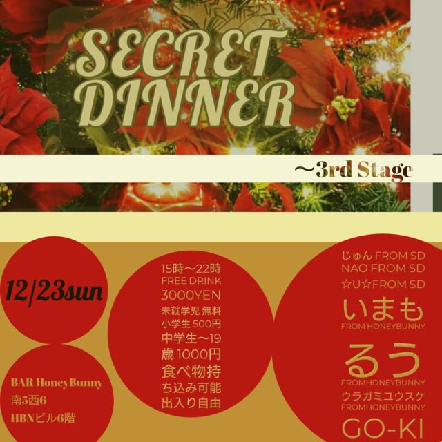 ¤Þ¤À¤Þ¤ÀÊç½¸Ãæ¡ª º£Ç¯¤Ï¥¤¥Ù¥ó¥È¾¯¤Ê¤á¤À¤Ã¤¿¤±¤É¡¢Ç¯Ëö¤¯¤é¤¤¤·¤á¤Þ¤·¤ç¤¦¡ª ¡ØËºÇ¯²ñ¤À¤è¡¢Á´°÷½¸¹ç¡ª¡Ù ÆüÄø¡§12·î30Æü¡ÊÆü¡Ë ¡Ú°ì¼¡²ñ¡Û ¤ªÅ¹¡§¶å½£ÎÁÍý¡¡¤ª¤ä¤¸¥À¥¤¥Ë¥ó¥° É÷ÅÚ¡¥»¥ËÚ±Ø BridgeŹ ½»½ê¡§ËÌ£¶À¾£µ ¥µ¥Ä¥¨¥Bridge¡Ê»¥ËÚ±ØÀ¾¸ýÅÌÊ⣱ʬ¡¿JR¹â²Í²¼¡Ë »þ´Ö¡§18»þ¡Á20»þ ²ñÈñ¡§4,500±ß ¡ÚÆó¼¡²ñ¡Û ¤ªÅ¹¡§¥µ¥ó¥È¥ê¡¼¥º¥¬¡¼¥Ç¥óÚߡʤ½¤é¡Ë ½»½ê¡§ËÌ£µÀ¾£µ £Ê£Ò£µ¡¦£µ¥Ó¥ë£¸£Æ »þ´Ö¡§20:30¡Á22:30 ²ñÈñ¡§2,000±ß ¡Ú»°¼¡²ñ¡Û ͽÄê¤Ï¤¢¤ê¤Þ¤»¤ó¤¬¡¢½ªÅŤޤÇÍ·¤Ù¤ëÊý¤Ï¡Ö¤ªÃã¡×¤¹¤ë¤Î¤â¤¢¤ê¤Ç¤¹¤Í(¾Ð) ^^