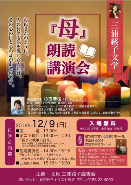 ¡Ú»°±º°½»ÒÆÉ½ñ²ñ¤«¤é¤Î¤ªÃΤ餻¡Û ÌæÊ̻ԤÇË̸«»°±º°½»ÒÆÉ½ñ²ñ¼çºÅ¤Î¡ØÊìϯÆÉ¹Ö±é²ñ¡Ù¤¬³«¤«¤ì¤Þ¤¹¤è¡ª ¡ØÊìϯÆÉ¹Ö±é²ñ¡Ù Æü»þ¡§2018ǯ12·î9Æü¡¡13:30³«¾ì ¥×¥í¥°¥é¥à¡¡ ¡¡13:30¡¡¡¡¡¡¡¡¡¡ ³«¾ì ¡¡14:00¡Á14:30¡¡¥ß¥Ë¾å±Ç²ñ ¡¡ ¡¡¡¡¡¡¡¡¡¡¡¡¡¡¡¡ µ§¤ê¤È¼¹É®¤ÎÆü¡¹ ¡¡14:30¡Á15:15¡¡Ï¯ÆÉ¹Ö±é²ñ¡¡ Âç¤é¤«¤Ç²¹¤«¤¯¡¢¿Í¤¬¹¥¤¤Ç, ½Ð²ñ¤¦¿Í¡¹¤ò°¦¤µ¤º¤Ë¤Ï¤¤¤é¤ì¤Ê¤¤ ¡¡ ¡¡15:15¡Á15:30¡¡»°±º°½»Ò¾ðÊó ϯÆÉ¸ø±é¡§¿ùÅĽջޤµ¤ó ²ñ¾ì¡§ÌæÊÌ»Ôʸ²½²ñ´Û¥Û¡¼¥ë ÈñÍÑ¡§Æþ¾ì̵ÎÁ ¿½¹þ¡§¿½¹þÉÔÍס¡Á´Àʼ«Í³¡¡246ÀÊ Ìä¹ç¡§ÌæÊÌ¡¡¿À¾¤