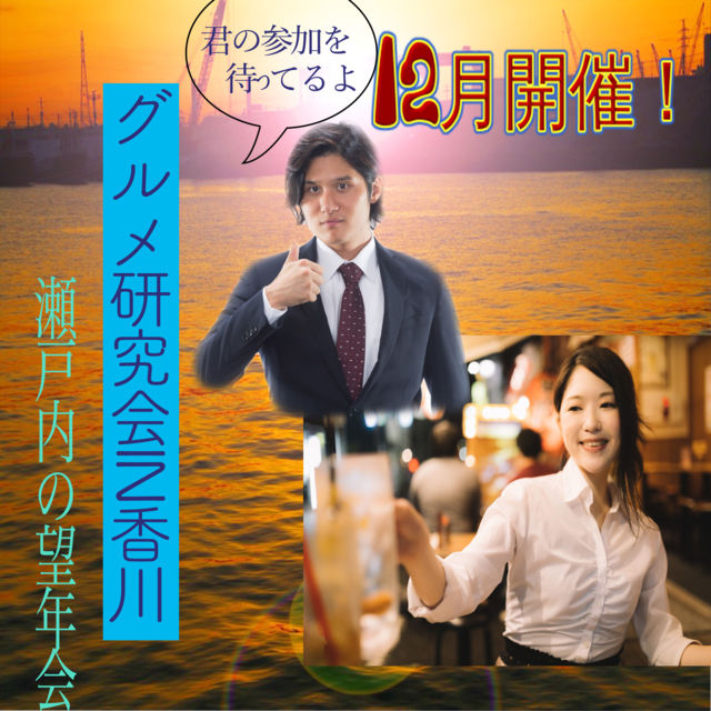 グルメ研究会IN香川 12月29日「望年会」開催いたします! 香川県の人気店での開催です! 現在15名以上参加お集まりいただいております! ぜひご参加いただけましたら幸いです! 若干名募集いたしております! お問い合わせはメッセかHPから! http://www.gourmet-kagawa.club/RE