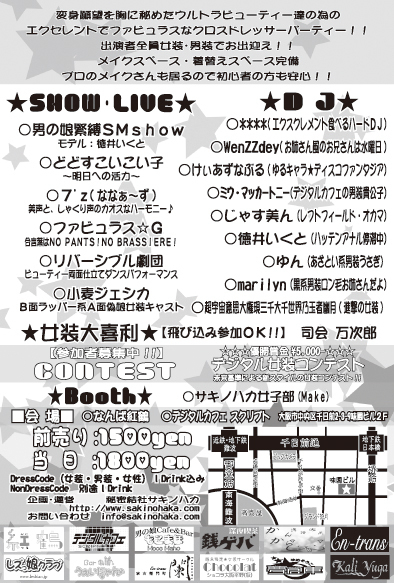 ¢¡¢¡ULTRA EXcellent vol.31¢¡¢¡ ¡þ¡þ¡þ¡þ¡þ¡þ¡þ¡þ Êѿȴê˾¤ò¶»¤ËÈë¤á¤¿¥¦¥ë¥È¥é¥Ó¥å¡¼¥Æ¥£¡¼Ã£¤Î°Ù¤Î ¥¨¥ì¥ó¥È¤Ç¥Õ¥¡¥Ó¥å¥é¥¹¤Ê¥¯¥í¥¹¥É¥ì¥Ã¥µ¡¼¥Ñ¡¼¥Æ¥£¡¼¡ª¡ª ½Ð±é¼ÔÁ´°÷½÷ÁõŽ¥ÃËÁõ¤Ç¤ª½Ð·Þ¤¨¡ª¡ª ¥á¥¤¥¯¥¹¥Ú¡¼¥¹¡¦ÃåÂØ¤¨¥¹¥Ú¡¼¥¹´°È÷ ¥×¥í¤Î¥á¥¤¥¯¤µ¤ó¤âµï¤ë¤Î¤Ç½é¿´¼Ô¤ÎÊý¤â°Â¿´¡ª¡ª ¡þ¡þ¡þ¡þ¡þ¡þ¡þ¡þ ¢£2018/12/01(ÅÚ) OPEN 21:00 ¡Á LAST 05:00 ¢£@¤Ê¤ó¤Ð¹ÈÄá ¡õ ¥Ç¥¸¥¿¥ë¥«¥Õ¥§ ¥¹¥¯¥ê¥×¥È Âçºå»ÔÃæ±û¶èÀéÆüÁ°2-3-9Ì£±à¥Ó¥ë2F Á°Çä¤ê:1500yen Åö¡¡Æü:1800yen DressCode¡Ê½÷Áõ¡¦ÃËÁõ¡¦½÷À¡Ë£±Drink¹þ¤ß No