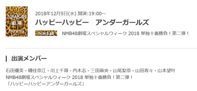 12月5日に開催されるNMB48劇場スペシャルウィーク 2018 単独十番勝負!第二弾! 「ハッピーハッピーアンダーガールズ」に三田麻央さんの出演が決定しました。 これにつきまして、共演する石田優美・磯佳奈江・川上千尋・内木志・三田麻央・山尾梨奈・山田寿々・山本望叶の8コミュニティでスタンド花とポスター作成を合同で企画しようとのお話があります。(1コミュニティあたり負担金4000円程度) またコミュニティでそれぞれ楽屋花を贈るところですが、これにつきましてもある程度統一しようということで、花束の形で、予算も各コミュニティ3