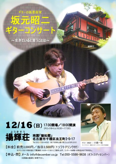 Æü»þ¡§12·î16Æü¡ÊÆü¡Ë17:30³«¾ì¡¿18:00³«±é ²ñ¾ì¡§Íȵ±Áñ¡ÊYOKISO¡Ë Æî±à¡Öݾ¾³Õ¡×¡¡Ì¾¸Å²°»ÔÀé¼ï¶èË¡²¦Ä®2-5-17 ¡¡¡¡¡¡¡ÊÃϲ¼Å´Å컳Àþ¡¦³Ð²¦»³¤è¤êÊâ10ʬ¡Ë¡¡Tel. 052-759-4450 ÎÁ¶â¡§Á°Ç䡦ͽÌó3,000±ß¡¿ÅöÆü3,500±ß¡Ê£±¥½¥Õ¥È¥É¥ê¥ó¥¯ÉÕ¡Ë ¥²¥¹¥È¡§¾®Åç°ì¹¨¡Ê¥Õ¥ê¡¼¥¢¥Ê¥¦¥ó¥µ¡¼¡¦Å쳤¥é¥¸¥ª¥Ñ¡¼¥½¥Ê¥ê¥Æ¥£¡¦ÂçÆ±Âç³Ø½Ú¶µ¼ø¡Ë ͽÌ󡧥᡼¥ë info@december.co.jp¡¡Tel.050-5586-9638 ÅÅÏäޤ¿¤Ï¥á¡¼¥ëͽÌó¸å¤Ë²¼µ¸ýºÂ°¸¥Á¥±¥Ã¥ÈÂå¶â¤ò¤ª¿¶¹þ¤ß²¼¤µ¤¤¡£ Æþ¶â³Îǧ¸å¥Á¥±¥Ã¥È¤ò¤ªÁ÷¤êÃפ·¤Þ¤¹¡£Á÷ÎÁ¤Ï¤³¤Á¤é¤ÇÉéôÃפ·¤Þ¤¹¡£¿¶¹þ¤ß¼ê¿ôÎÁ¤Ï¤´Éé