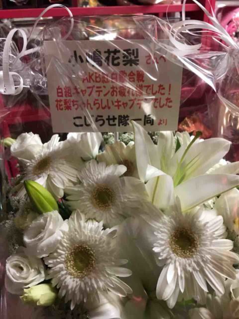 お疲れ様です。 当コミュニティへのご参加ありがとうございます。 グループLINEにて話し合い余剰金にて対応しましたので報告のみです。 AKB紅白歌合戦白組キャプテンとして 白組を取り仕切り無事終了致しましたのでお疲れ様でしたの意味を込めて 本日12/17に花梨ちゃんにお花を届けさせていただきました。 余剰金にて対応致しましたのでこの件につきましてのカンパ金は集めません。