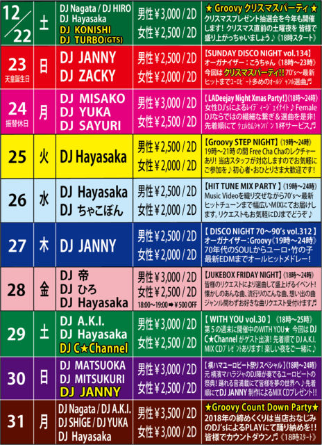 DISCO Groovy º£·î¤âÂ裴¿åÍËÆü¤Ï¡ª¡ÚHIT TUNE MIX PARTY¡ÛSOUL¡¢FUNK¡¢DANCE CLASSICS¡¢70's¡ÁºÇ¿·HIT¶Ê¤Þ¤Ç Music Video ¤ò¿¥¤ê¸ò¤¼¤Ä¤Ä¤«¤±¤Þ¤¯¤ê¤Þ¤¹¡ª ¥ê¥¯¥¨¥¹¥È¤Ë¤â½ÐÍè¤ë¸Â¤ê¤ª±þ¤¨Ãפ·¤Þ¤¹¤Î¤ÇDJ¤Þ¤Ç¤ªµ¤·Ú¤Ë¤É¤¦¤¾¢ö ¡Ú²»³Ú¡Û ¥ª¡¼¥ë¥¸¥ã¥ó¥ë¡¦¥ª¡¼¥ë¥ß¥Ã¥¯¥¹ ¡Ú³«ºÅ»þ´Ö¡Û 19:00¡Á24:00 ¡ÚÎÁ¶â¡Û ÃËÀ¡§¡ï2,500 / 2Drinks ½÷À¡§¡ï2,000 / 2Drinks ¡ÚDJ's¡Û Hayasaka / ¤Á¤ã¤³¤Ü¤ó