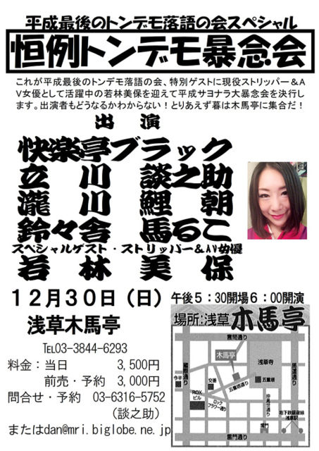 ¡Ø¹±Îã¥È¥ó¥Ç¥â˽ǰ²ñ¡Ù Ê¿À®ºÇ¸å¤Î¥È¥ó¥Ç¥âÍî¸ì¤Î²ñ¥¹¥Ú¥·¥ã¥ë¡ªÆÃÊÌ¥²¥¹¥È¤Ë¸½Ìò¤Î¥¹¥È¥ê¥Ã¥Ñ¡¼ ¡õ£Á£Ö½÷Í¥¤Î¼ãÎÓÈþÊݤò·Þ¤¨¤ÆÊ¿À®¥µ¥è¥Ê¥éÂç˽ǰ²ñ¤ò´º¹Ô¤¹¤ë¡ª Æü»þ¡§£±£²·î£³£°Æü¡ÊÆü¡Ë¸á¸å£µ¡§30³«¾ì£¶¡§00³«±é ²ñ¾ì¡§ÀõÁðÌÚÇÏÄâ¡¡ä03-3844-6293 ÎÁ¶â¡§ÅöÆü3,500±ß¡¡Á°Ç䡦ͽÌó¡¡3,000±ß Ìä¹ç¤»¡¦Í½Ìó¡¡03-6316-5752ÃÌÇ·½õ¡¡ ¤Þ¤¿¤Ï¡¡dan@mri.biglobe.ne.jp ¥³¥áÍó¤Ç¤â£Ï£Ë¡ª