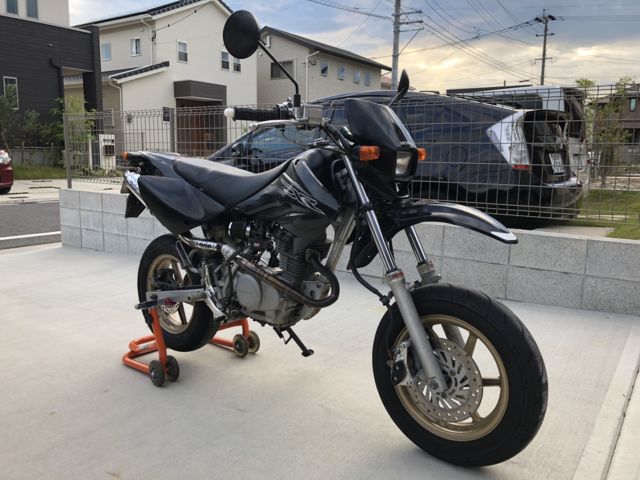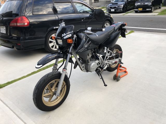 ・メーカー名: ホンダ ・車名: XR100モタード HD13 ・年式: 2006 ・2st/4st:4st ・排気量: 100cc ・色: 黒 ・自走:可能 ・走行距離:17,151km (実走行) ・車検/自賠責の有無:なし ・キズや不具合の有無: 通常使用・経年による小傷やサビなどは一部あるものの、走行上支障となる不具合はなく、転倒歴はありません。 また、マフラーからの排気熱が当たらないよう、純正フェンダーを一部加工し、ウィンカーを移設しています。 ・カスタム箇所や装備: サインハウス LEDヘッドライトキット シフトアップ ビレットトップ