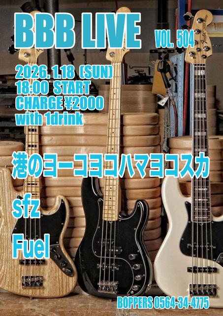 BBB LIVE 504 2026.1.18 (SUN) 18:00 START CHARGE \2000 with 1drink ¹Á¤Î¥è¡¼¥³¥è¥³¥Ï¥Þ¥è¥³¥¹¥« sfz Fuel