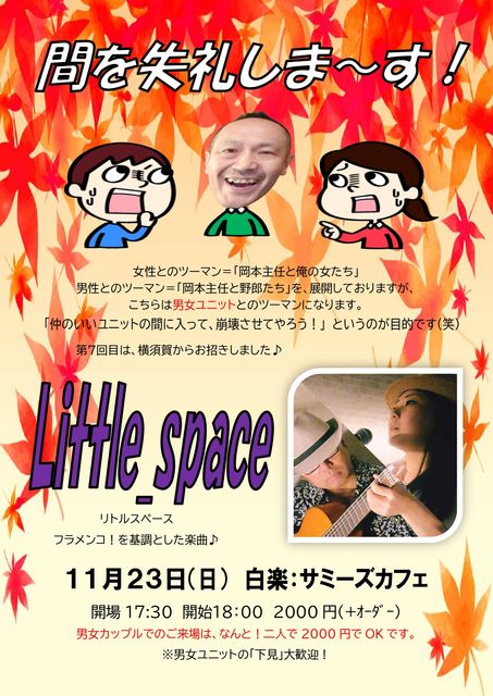 ¡ü³µÍ× £±£±·î£²£³Æü¡ÊÆü¡Ë Çò³Ú¡§¥µ¥ß¡¼¥º¥«¥Õ¥§ https://x.gd/hUONj ²¬ËܼçǤ¤Î¡Ö´Ö¤ò¼ºÎ餷¤Þ¡Á¤¹¡× Â裷²óÀï Little_space 17:30/18:00 2000(+޵ްŽÀŽÞް) ¡üÆâÍÆ Ã˽÷¥æ¥Ë¥Ã¥È¤È²¬ËܼçǤ¤Î¥Ä¡¼¥Þ¥ó¤Ç¤¹¡£ Â裷²óÌܤϡ¢¥Õ¥é¥á¥ó¥³¡ª¤ò´ðÄ´¤È¤·¤¿¥æ¥Ë¥Ã¥È¡ÖLittle_space¡× ´üÂÔ¤·¤Æ¤¤¤¤¤Ç¤¹¤è¢ö ¡ü¥¿¥¤¥à¥¹¥±¥¸¥å¡¼¥ë 18:00¡¡°§»¢ 18:05¡¡Little_space 18:40¡¡²¬ËܼçǤ 19:10¡¡µÙ·Æ 19:20¡¡²¬ËܼçǤ 19:55¡¡Little_space 20:25¡¡Ž±ŽÝŽºŽ°ŽÙ޾ޝ޼ޮŽÝ 20:35¡¡½ª±é ¡üÆÃŵ Ã˽÷¥«¥Ã¥×¥ë¤Ç¤Î¤´Íè¾ì¤Ï¡¢¤Ê¤ó¤È¡ªÆó¿Í¤Ç200
