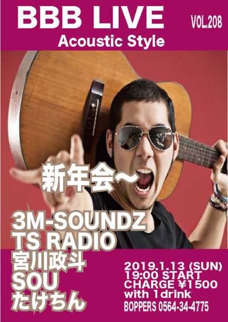 BBB LIVE 208 Acoustic STYLE ¿·Ç¯²ñ 2019.1.13 (SUN) 19:00 START CHARGE \1500 with 1drink 3M-SOUNDZ TS RADIO µÜÀîÀ¯ÅÍ SOU ¤¿¤±¤Á¤ó