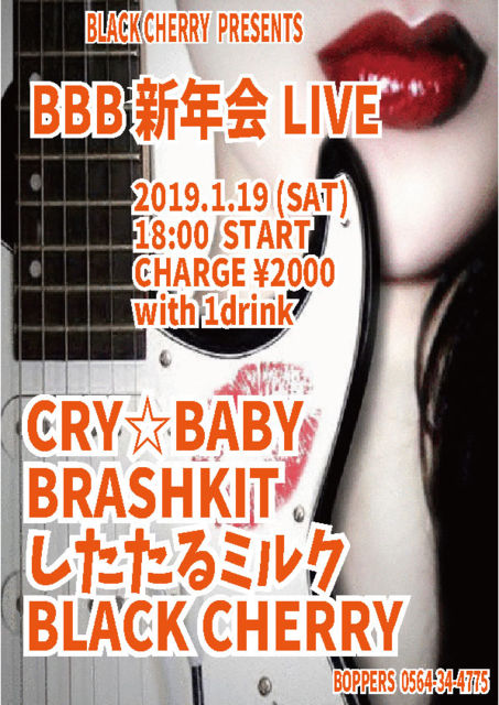 BLACK CHERRY Presents BBB ¿·Ç¯²ñ LIVE 2019.1.19 (SAT) 18:00 START CHARGE \2000 with 1drink CRY¡ùBABY BRASHKIT ¤·¤¿¤¿¤ë¥ß¥ë¥¯ BLACK CHERRY