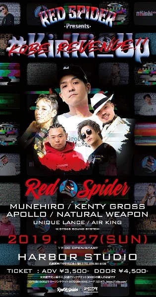 開催日:1月27日(日) 開場:17:00 開演:17:00 会場:HARBOR STUDIO 場所:兵庫県 住所:兵庫県神戸市中央区波止場6-3 チケット:発売中 お問い合わせ:カエルスタジオミュージック 電話:06-6636-0226 RED SPIDER MUNEHIRO KENTY GROSS APOLLO NATURAL WEAPON UNIQUE LANCE AIR KING K-3756S SOUND SYSTEM 前売 3500円 当日 4500円 ※未就学児入場不可 ※別途ドリンクチケット(500円)の購入が必要です ローソンチケット 0570-084-005(Lコード:52147) https://l-tike.com/search/?keyword=52147