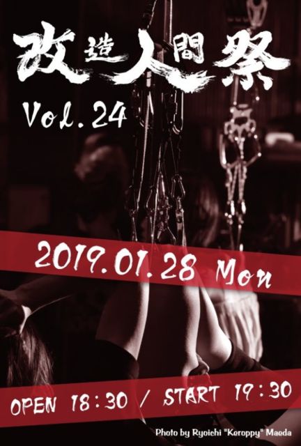 2019年1月28日(月) 歌舞伎町ロフトプラスワン OPEN 18:30 / START 19:30 予約¥3000/当日¥3500(飲食別) <予約受付> https://goo.gl/bF2wuV 身体改造ファン必見! 国内唯一のプロサスペンションチーム『THEフッカーズ』の首領・ASAMIと、アンダーグラウンド最高峰パフォーマンスイベント団体『毒蟲』主宰の残酷天使・月花による夢の狂宴!! 改造していない方の参加も大歓迎! 【出演】 月花 ASAMI 他、改造人間多数!! 【ゲスト】 ケロッピー前田 【BOOTH】 Tribal Tattoo APOCARIPT Taku Oshima(TATTOO) Scar