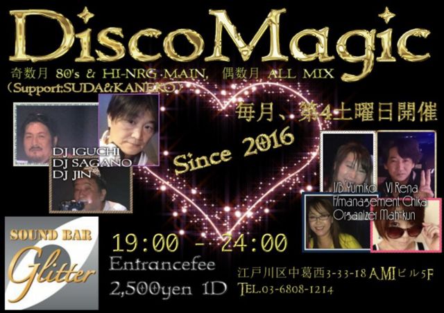 ¡ú2019ǯ2·î23Æü¡ÊÅÚÍËÆü¡Ë ¥¤¥Ù¥ó¥È:¡ÖDisco Magic¡× ¡ÊËè·îÂè4ÅÚÍËÆü³«ºÅ¡Ë ²ñ¾ì:³ëÀ¾¥°¥ê¥Ã¥¿¡¼ »þ´Ö:19»þ¡Á24»þ ¥¨¥ó¥È¥é¥ó¥¹:2500±ß 1¥É¥ê¥ó¥¯&·Ú¿©¥Ð¥¤¥¥ó¥°ÉÕ¤ DJ:IGUCHI.JIN.SAGANO VJ:RENA body jewelry booth YUMIKO Organizer:Mar- kun Floor management Chika ¢¨´ñ¿ô·î¤Ï¡¢80's&HI-NRG SOUND MAIN! ¡ÊSUDA & KANEKO Support ¡Ë ¢¨¶ö¿ô·î¤Ï¡¢SOUND:ALL MIX! ¡ùSound Bar Glitter ¢©134-0083 ÅìµþÅÔ¹¾¸ÍÀî¶èÃæ³ëÀ¾3-33-18 AMI¥Ó¥ë5F 03-6808-1214 ÅìÀ¾Àþ³ëÀ¾±ØÅÌÊâ5ʬ Google¥Þ¥Ã¥× https://goo.gl/maps/