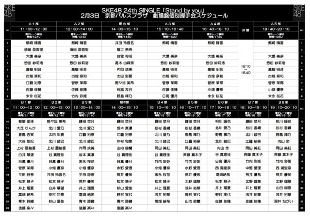 ³§¤µ¤Þ¡¢Æü¤´¤í¤è¤ê·§ºêÀ²¹á¤µ¤ó¤Ø¤Î±þ±ç¤¢¤ê¤¬¤È¤¦¤´¤¶¤¤¤Þ¤¹¡£ 2019ǯ2·î3Æü(Æü)¤Ë³«ºÅ¤µ¤ì¤Þ¤¹ SKE48 24th ¥·¥ó¥°¥ë¡ÖStand by you¡× ¡Ê·à¾ìÈס˸ÄḚ̂®¼ê²ñ ¡÷µþÅԥѥ륹¥×¥é¥¶¤Ë¤ª¤¤¤Æ ·§ºêÀ²¹á¤µ¤ó¤Î¥Õ¥¡¥ó¥ß¡¼¥Æ¥£¥ó¥°¤ò¹Ô¤¤¤Þ¤¹¡£ =============================== ¢£³«ºÅ»þ´Ö¡§14»þ00ʬ¡ÊͽÄê¡Ë ¤¯¤Þ¤Á¤ã¤ó¤¬»²²Ã¤¹¤ë°®¼ê²ñ¤ÎÉô¤Ï ¡¦A1Éô¡¦¡¦¡¦¡¦11¡§00~12¡§30¡Ê12¡§10¼õÉÕ½ªÎ»¡Ë ¡¦A2Éô¡¦¡¦¡¦¡¦12¡§30~14¡§00¡Ê13¡§40¼õÉÕ½ªÎ»¡Ë ¡¦A3Éô¡¦¡¦¡¦¡¦15¡§10~16¡§40¡Ê16¡§20¼õÉÕ½ªÎ»¡Ë ¡¦A4Éô¡¦¡¦¡¦¡¦16¡§40~18¡§10¡Ê17¡§50¼õÉÕ½ª